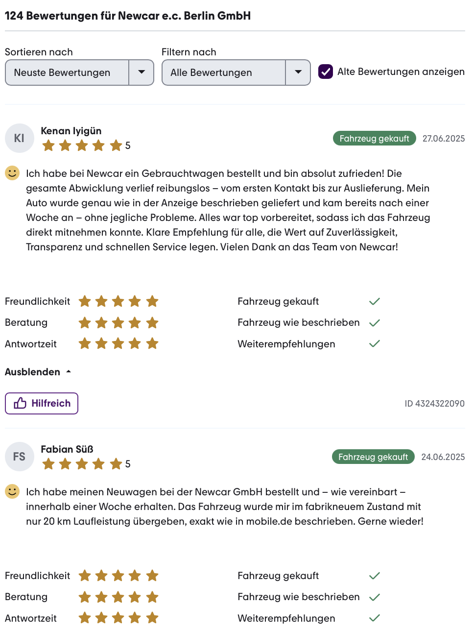 Klicken Sie auf der Bewertungsseite auf „Alte Bewertungen anzeigen“, um alle Bewertungen zu sehen!